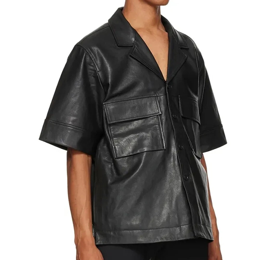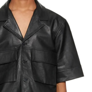 The shirt is crafted from high-quality PU leather that offers a smooth texture and a clean finish. At the same time, the material feels lightweight and breathable. Therefore, it remains comfortable even during long wear. In addition, the short sleeves make it a great choice for warm weather or layered styling.