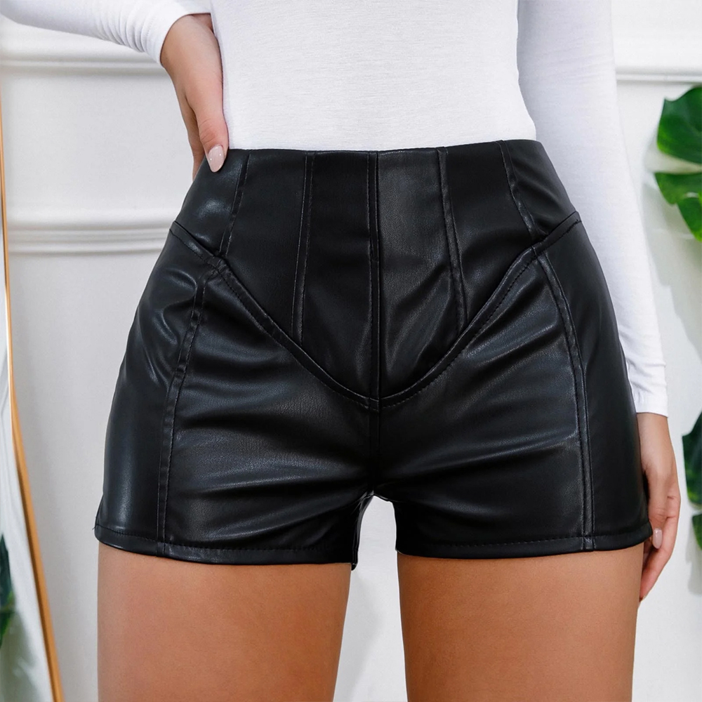 The high-rise cut helps shape the waistline while offering a secure and comfortable fit. These High Waist Leather Shorts sit neatly at the natural waist, allowing the legs to appear longer and more proportioned. Because of the tailored structure, the design looks sharp without feeling restrictive.