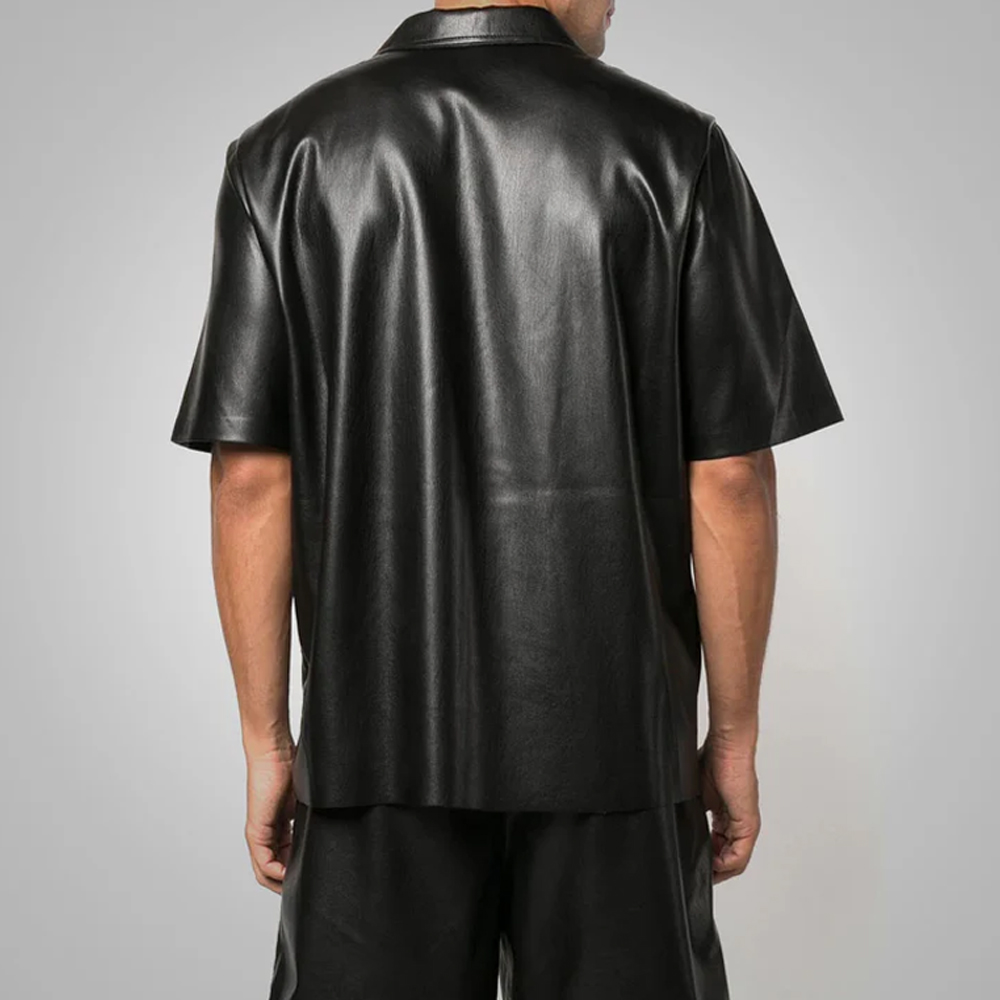 Whether you want to elevate your everyday wardrobe, stand out in streetwear outfits, or maintain a polished yet comfortable look, the Premium Men’s Vegan Leather Short Sleeve Black Shirt delivers on all fronts. Add it to your collection and enjoy a blend of modern fashion, sustainable materials, and effortless confidence.
