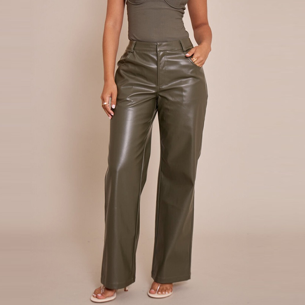 Made from soft PU material, these trousers offer a smooth leather-look finish with a lightweight and flexible feel. The fabric is comfortable to wear and easy to care for, making it suitable for daily use. In addition, the PU material holds its shape well, so the trousers keep a neat and polished appearance throughout the day.