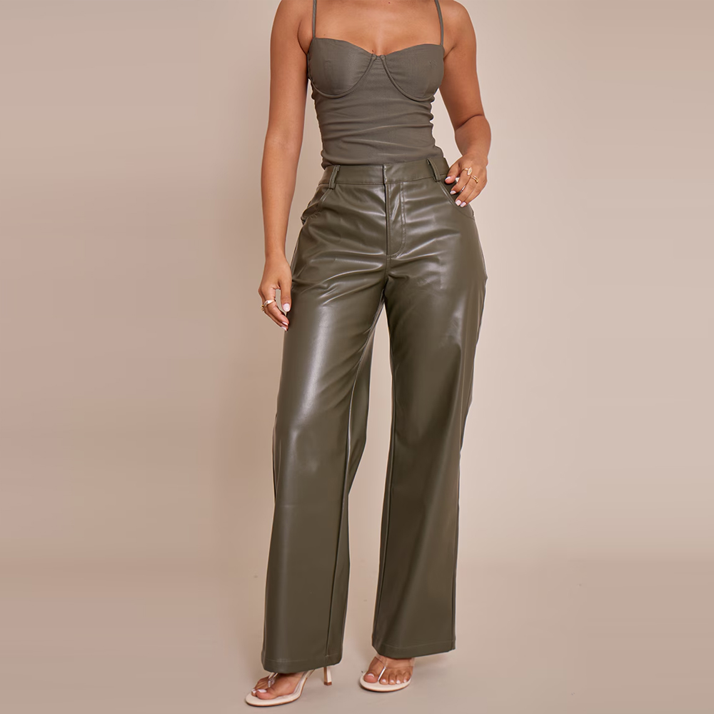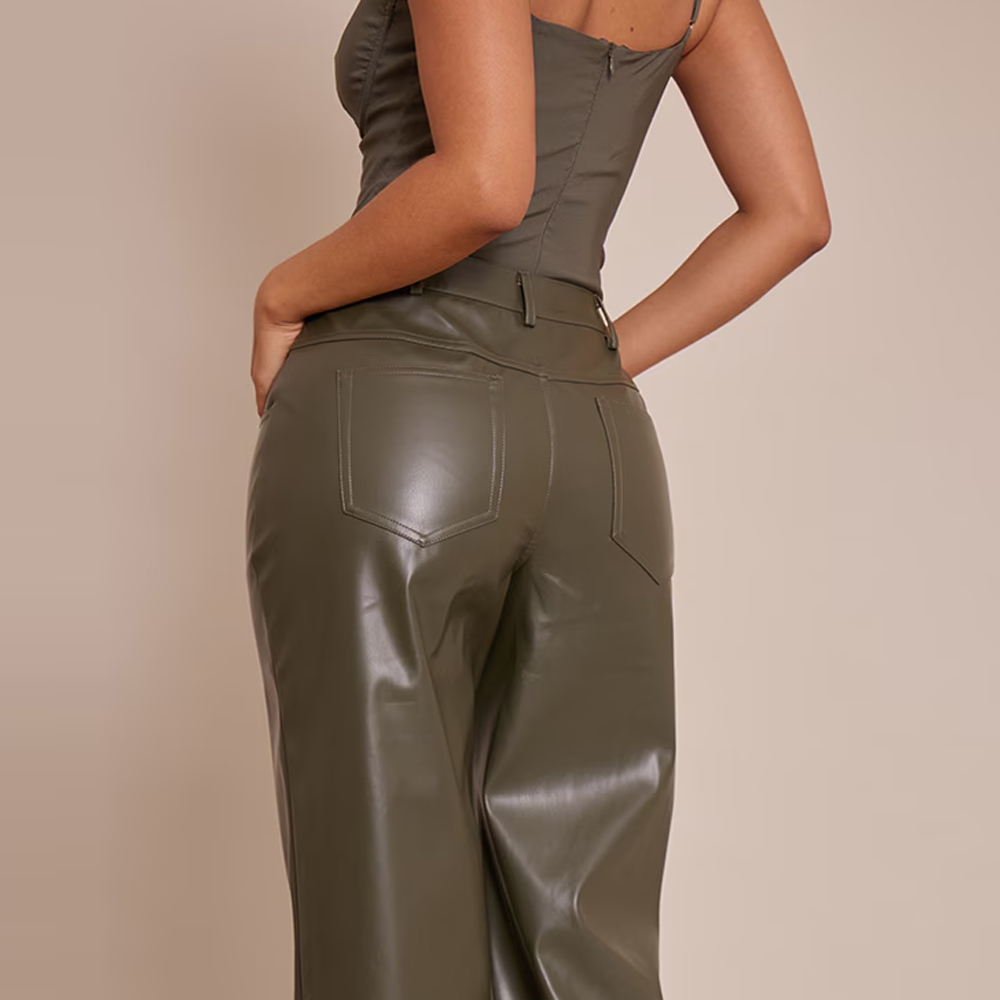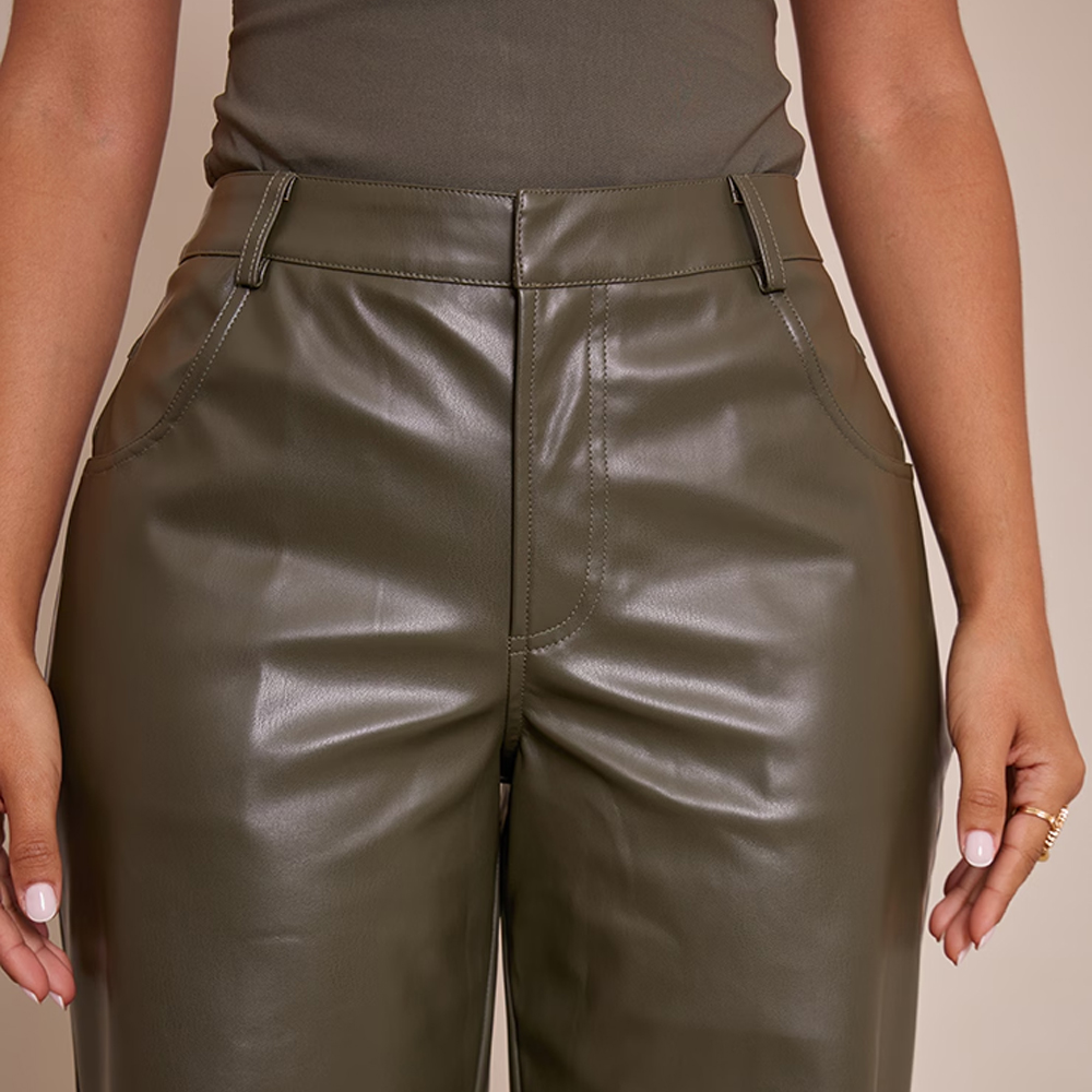 Petite Dark Olive PU Straight Leg Pant & Trousers are designed especially for petite women who want a clean, modern look with everyday comfort. The straight-leg cut creates a balanced shape, while the petite fit ensures the length and proportions sit perfectly without the need for alterations.