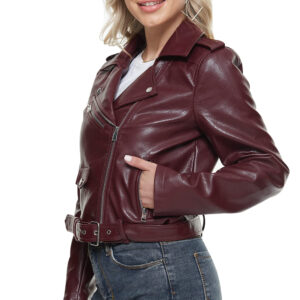Women’s Burgundy Leather Biker Jacket, designed to bring effortless style and confidence to your everyday look. With its deep burgundy tone and sleek biker-inspired silhouette, this jacket offers a perfect combination of modern fashion and timeless appeal.